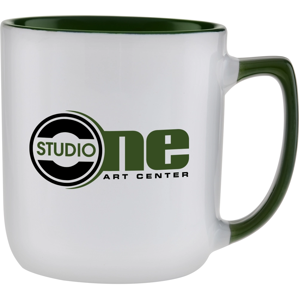 Discover the ideal wholesale solution for your order with the 17 oz Duo-Tone Arlanda Ceramic Mug. We provide superior custom printing services for these large, high-quality ceramic mugs, ensuring your brand stands out with a professional, personalized finish. These mugs are highly sought after for bulk purchases, perfect for corporate clients, promotional events, or retail inventory. The design is both ergonomic and attractive, featuring a handle and interior that are perfectly color coordinated in popular shades like Black, Green, Blue, Maroon, and Royal Blue. The straight body of the mug flows into a curved bottom, and the flared handle includes a convenient thumb rest, making it comfortable for daily use.