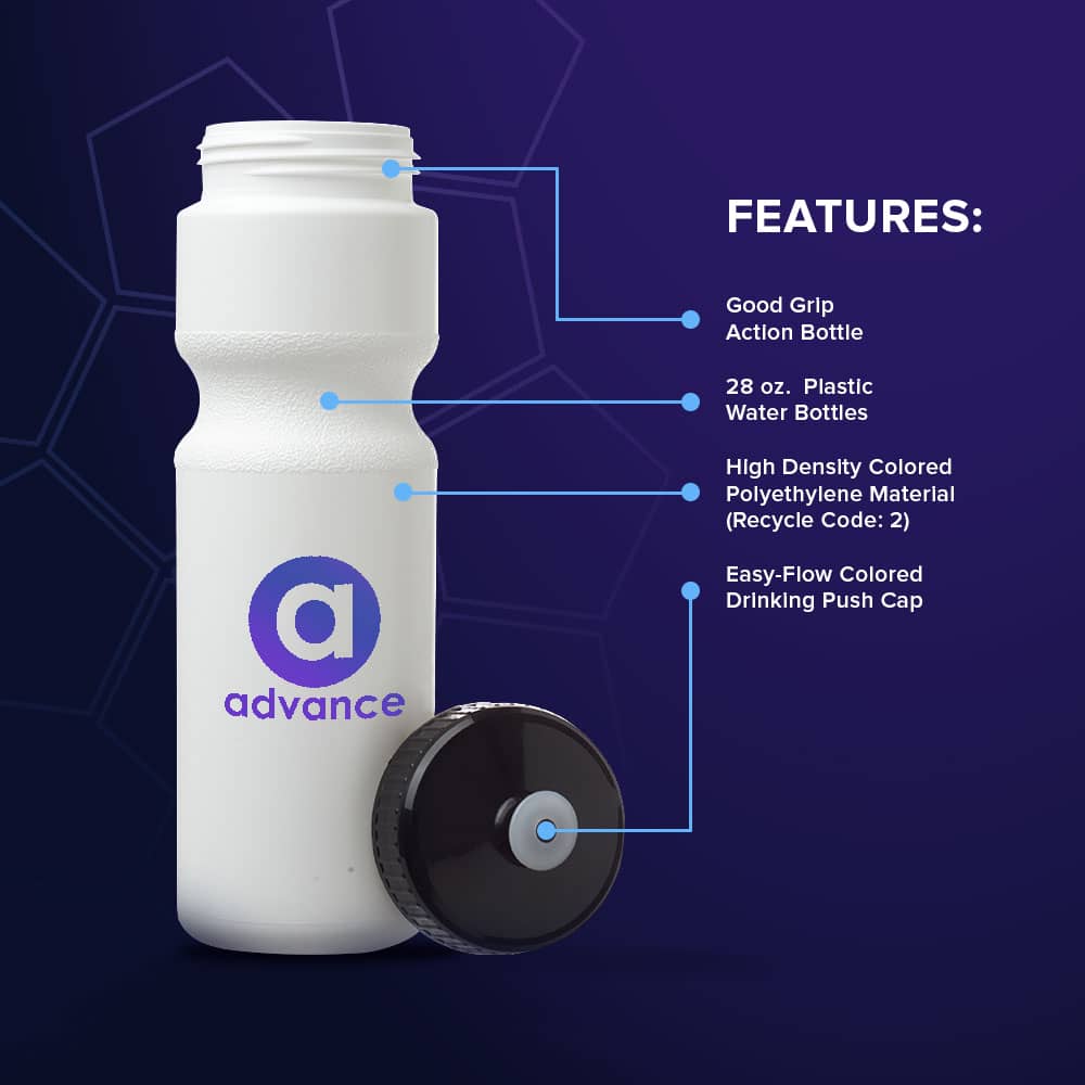 Custom 28 oz Plastic Water Bottle Bulk – Push Cap Lid