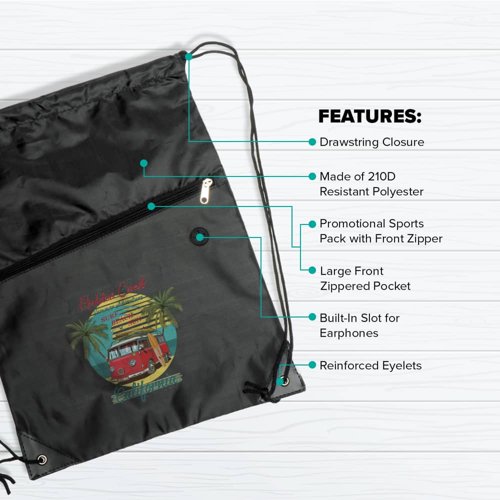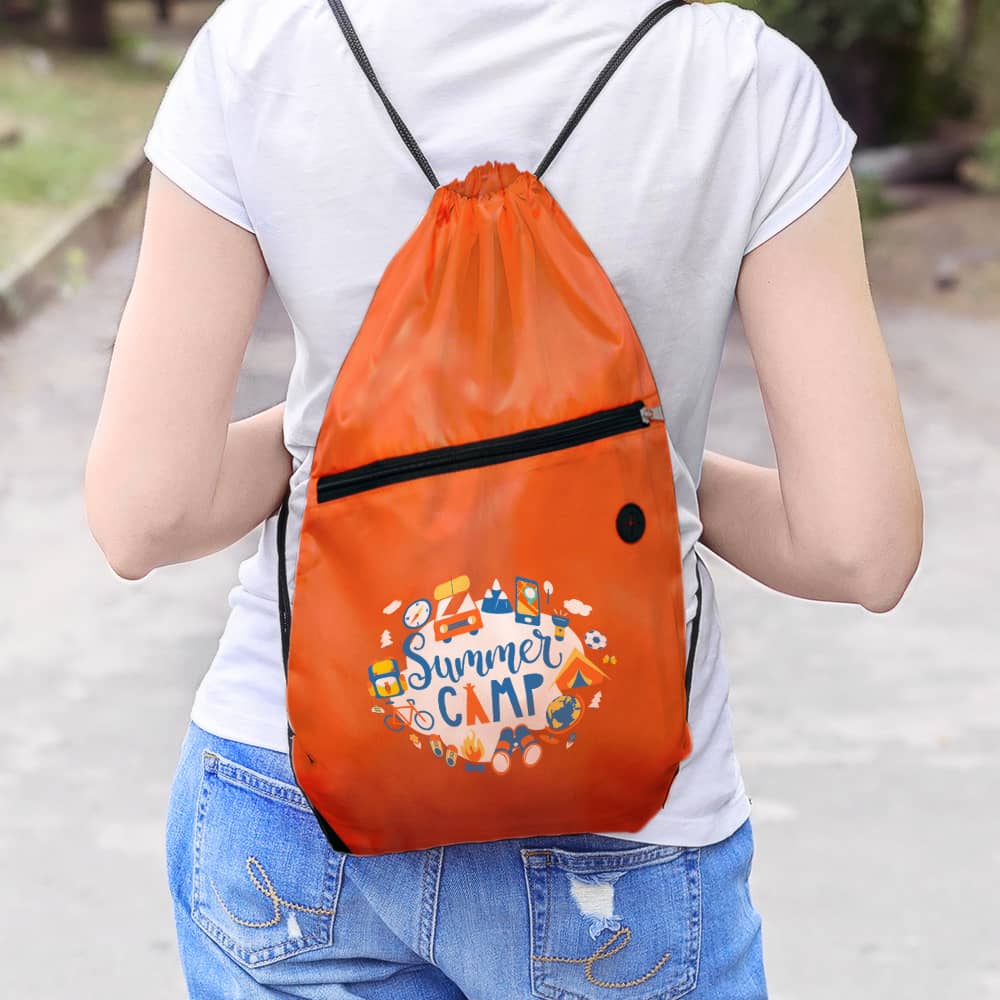 Showcase your brand in vivid detail with theย Drawstring Backpacks w/Zipper Pocket. This model elevates the classic sports pack with premium features and the versatility ofย full color imprint, allowing for high-impact logos, complex designs, or simple, vibrant text and clipart. Constructed from resilientย 210D Resistant Polyesterย and featuringย Reinforced Eyelets, these bags are built for durability through daily use at schools, gyms, or promotional events.
