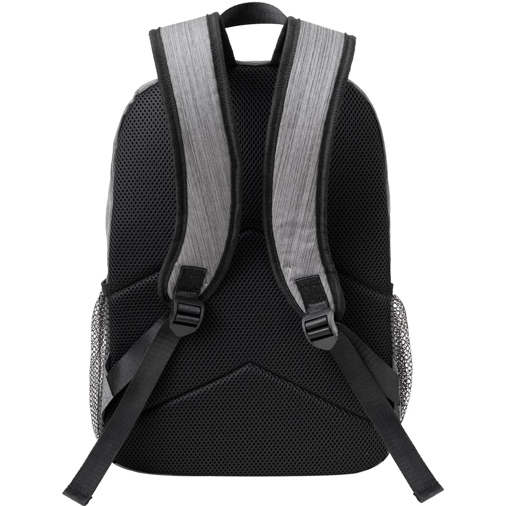 Designed for organization and comfort, the backpack features a spacious main compartment with a dedicated sleeve for laptops up toย 15.6 inches, complemented by two front pockets for easy organization of chargers, documents, and business essentials. Comfort is guaranteed with theย breathable mesh backย and shoulder straps, making all-day wear effortless. For durability, it includes a sturdy nylon top handle andย 1-inch nylon straps.